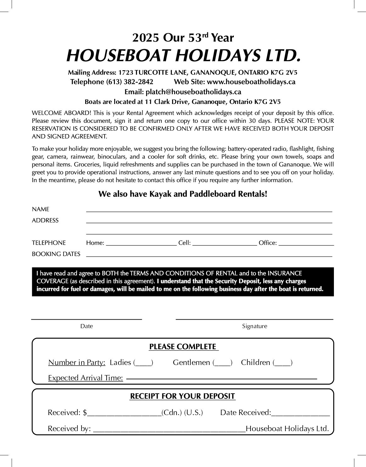 All rentals require a deposit of $400, refundable on your return less any incurred costs such as gas. Deposits are either through eTransfer or cheque. Note we do not accept credit cards. All deposits are subject to our kind cancellation policy.